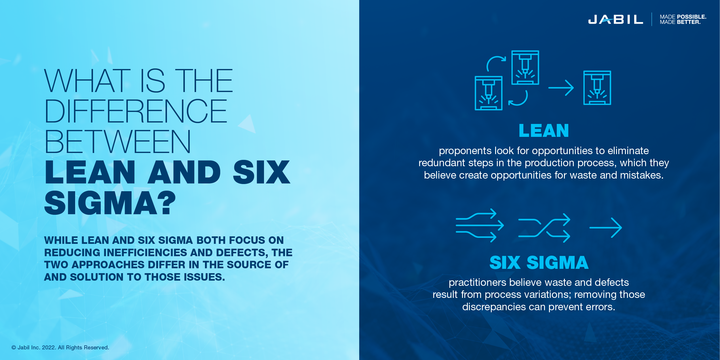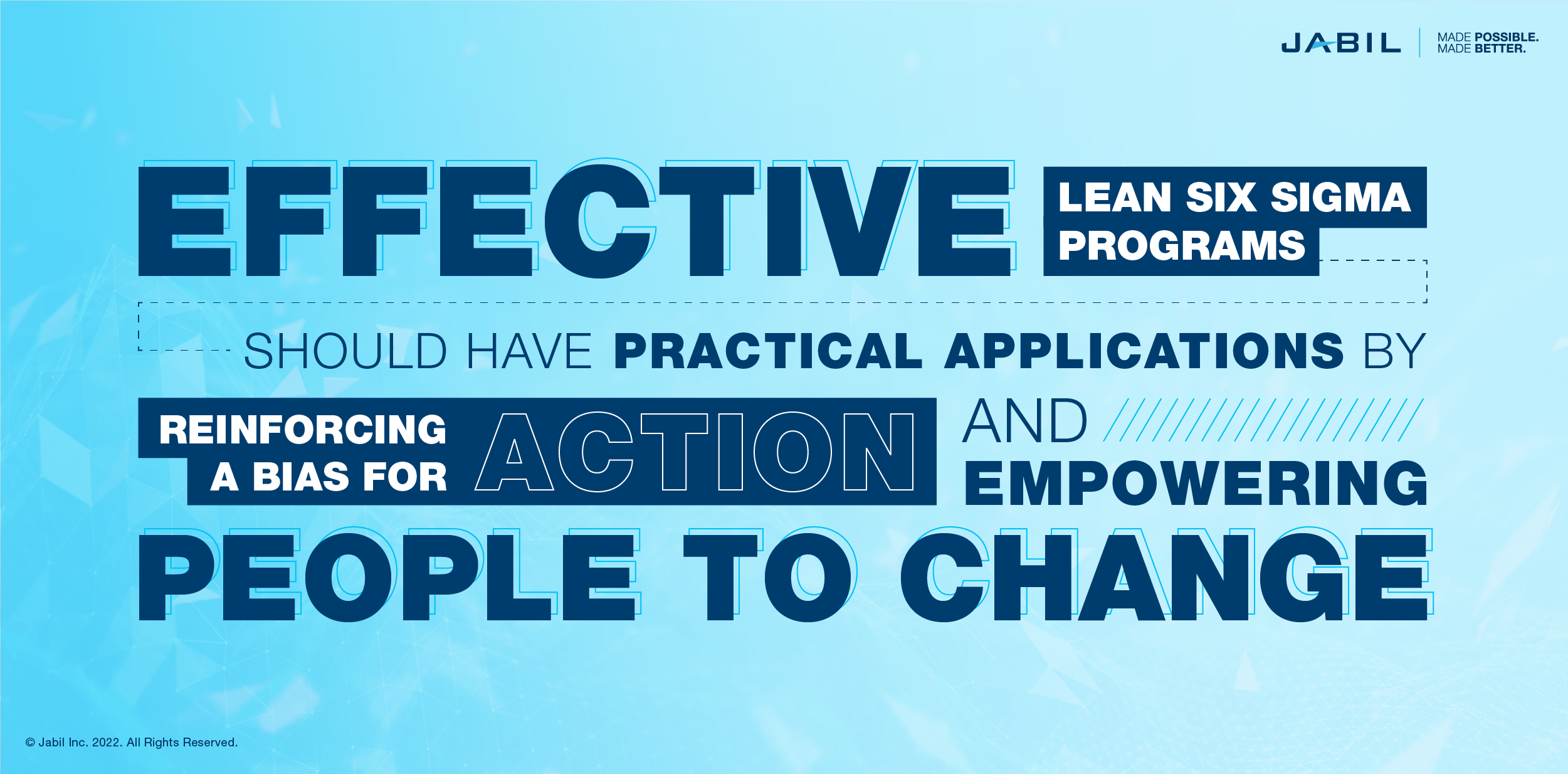 But it’s not just about our output. At Jabil, we’ve embedded Lean Six Sigma methodologies into our culture and leadership in order to ensure that the people we work with and those we serve consistently receive our absolute best.